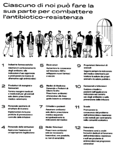 Per mantenere l’efficacia degli antibiotici e tutelare quindi la salute delle persone, degli animali e dell’ambiente è necessario il coinvolgimento di tutti i diversi attori in tutti i settori: solo collaborando si può sperare di contrastare efficacemente lo sviluppo e la diffusione della resistenza agli antibiotici”.